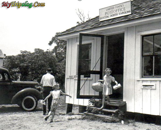 (A black & white photo of Buxton, Post Office; NC, USA )