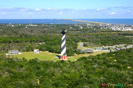 (A bird’s eye view of Hatteras Lighthouse and Buxton, NC, USA)