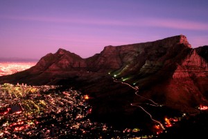 Table mountain and Cape Town at night, South Africa