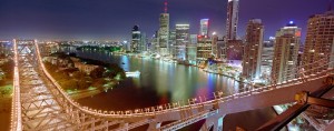 brisbane lights and bridge at night, australia
