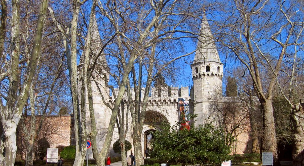 The Topkapi Palace is beautifully situated on the Seraglio Point between the Golden Horn and the Marmara Sea, with stunning views of the Bosphorus. The palace consists of four different courts. The first court covers the entire Seraglio Point and is surrounded by high walls. Access is via the Bab-ý Humayun, either the Imperial Gate.