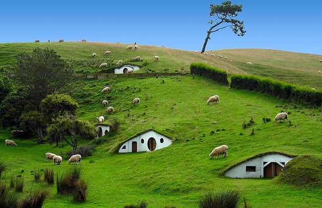 In the Waikato farming region, east of Hamilton, formed the hills near Matamata setting for the Shire. In this landscape with its winding roads, fresh grassy hills, hedges and trees typical Hobbit Stee was created. In this quiet corner of Middle-earth to live the Hobbits, a race of little people with big hairy feet.
