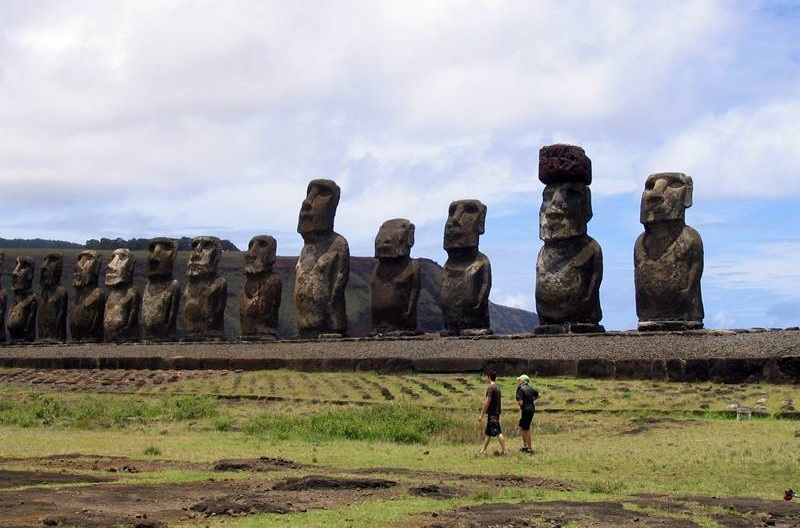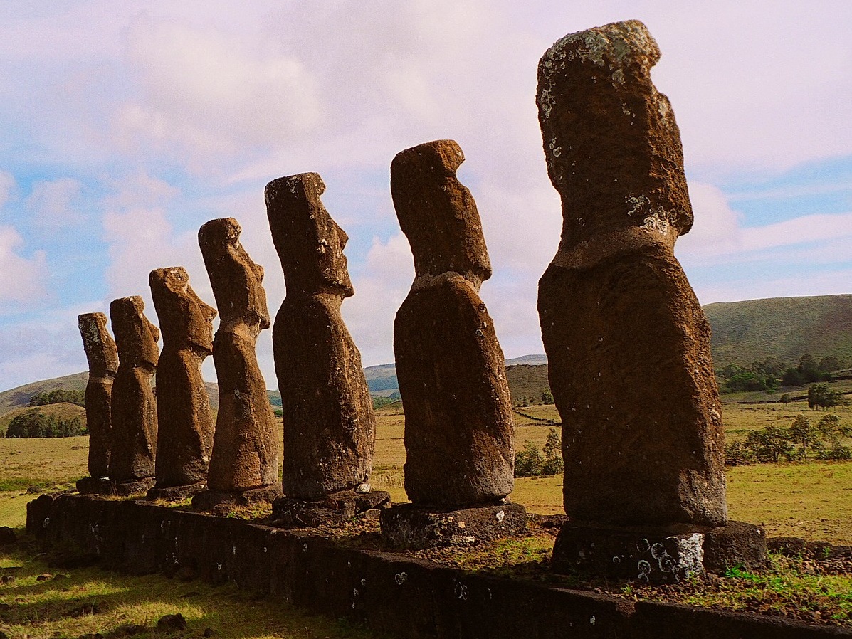 Although almost all statues on Easter Island look inland, there’s seven that looks towards the sea. These line images are arranged from smallest to largest and are sometimes called “the seven monkeys’ mentioned.