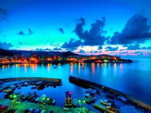 Lights over Gozo at night, Malta Island