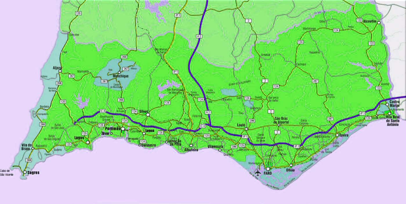 (Big size detailed Algarve map)