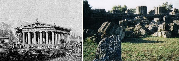 Right in the heart of the Greek region of Elis, in a lush valley where the rivers Alpheus (Modern Greek Alfios) and Kladeos (Modern Greek Laleïko) meet, is the extensive excavation field of Olympia (Greek: Ολυμπία, Olympí’a or Ολύμπια , Olympia) on hot days where it always smells like resin.