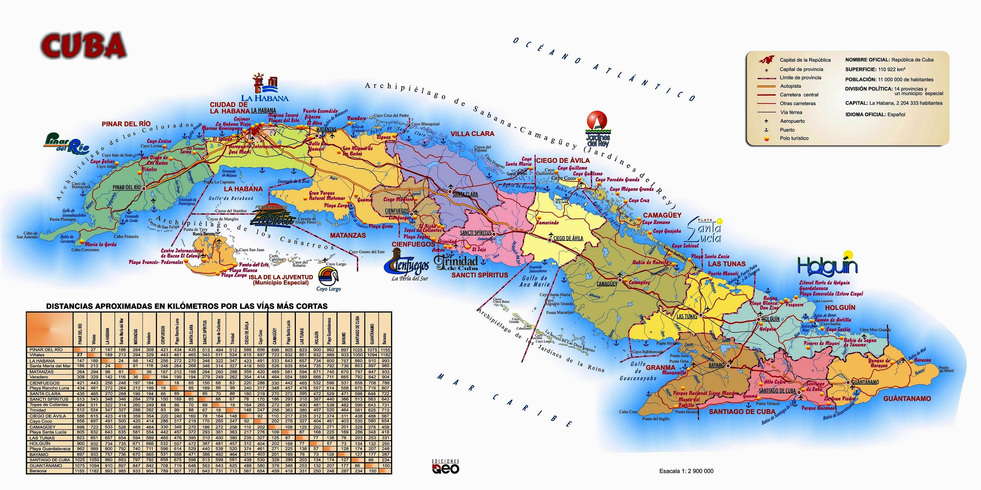 (Map of Cuba indicating the touristic destinations of Cuba)