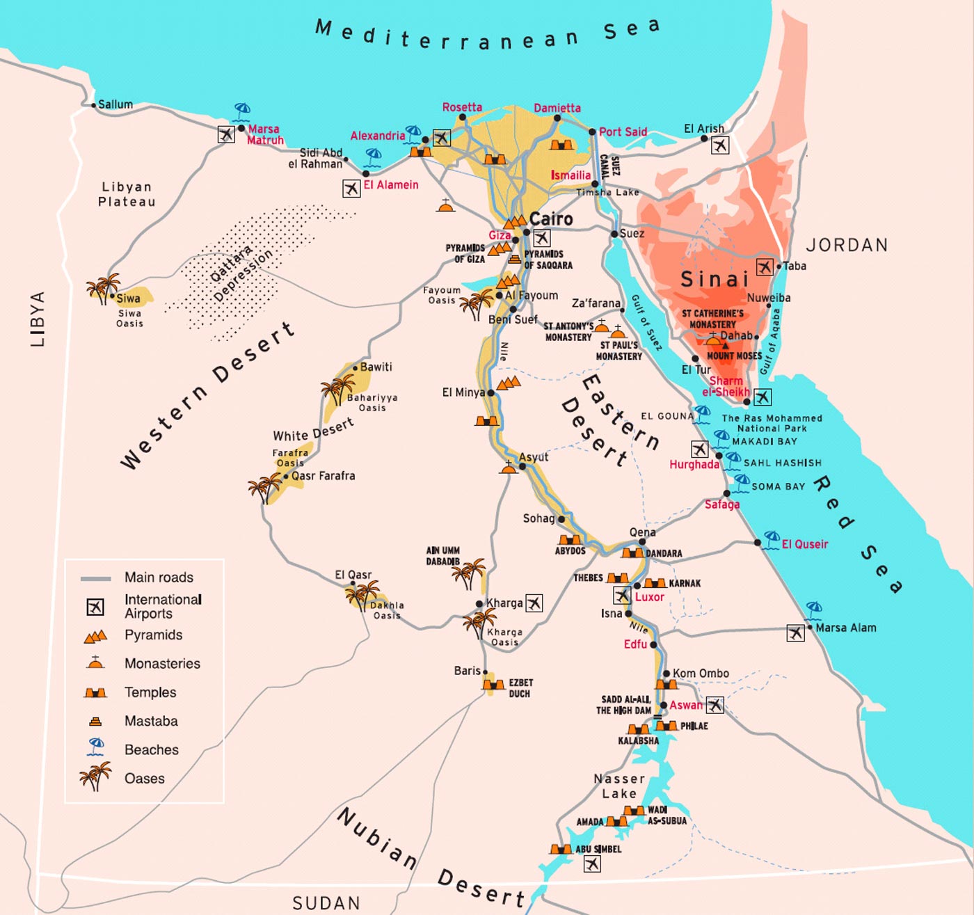 Another map of Egypt showing popular travel destinations.