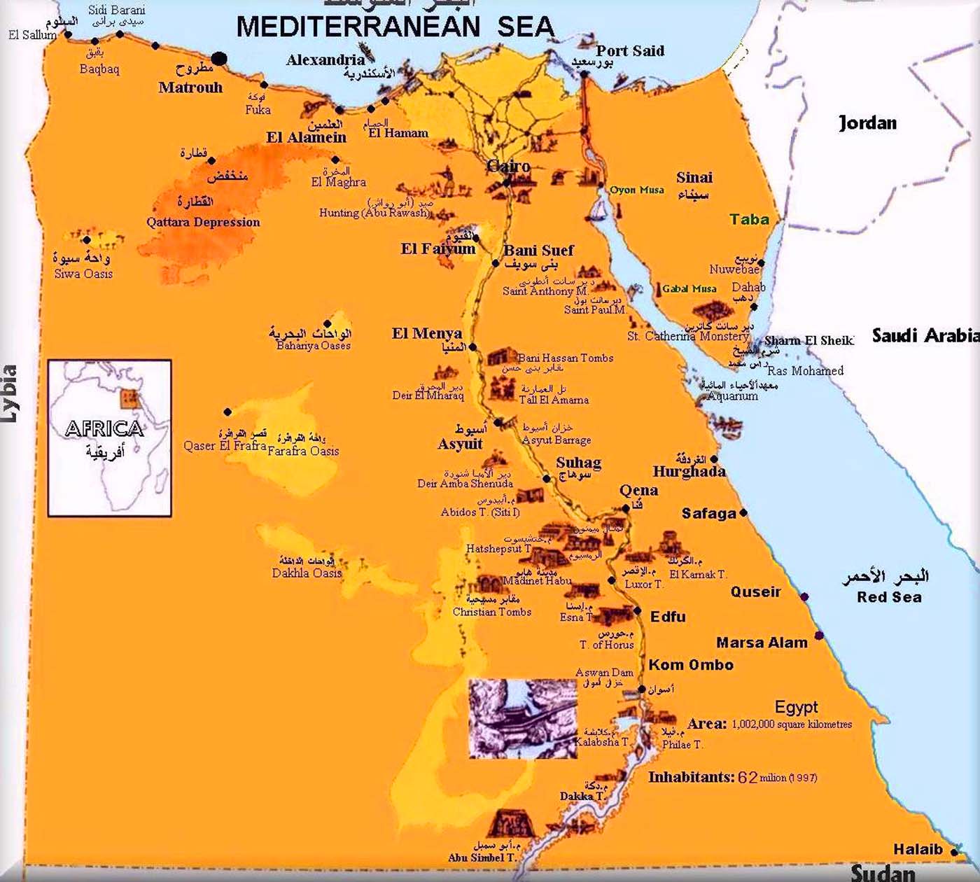 Map of Egypt in both Arabic and English languages.
