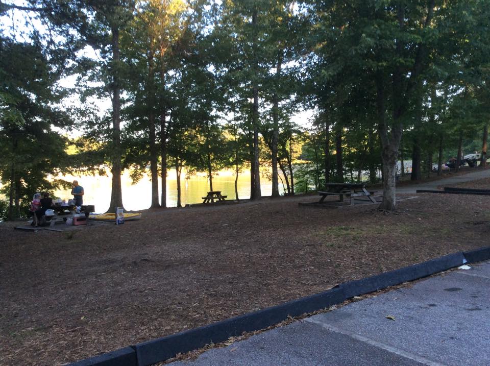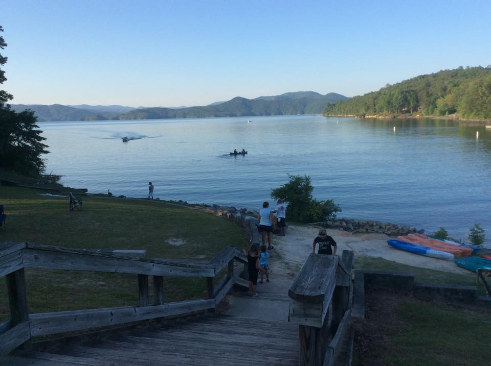 (Picnicking family -on left side- on lake shore, Lake Jocassee)