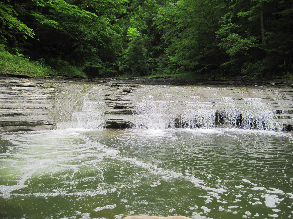 (This part was nice really. As you can see, this little falls creates a little pond. But unfortunately a big portion of the pond surface was covered by residues — branches, wood pieces etc. Nothing harmful, though. Only it wasn’t clean enough. If you get there and it’s clean, it can be an awesome place to get into water. All these pictures, by the way, show the part of the creek walking to the left once you get down to the creek after the trail.)